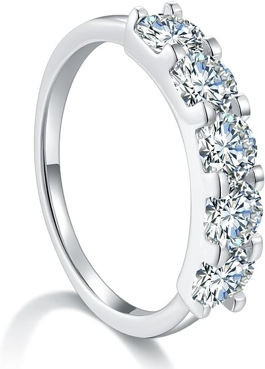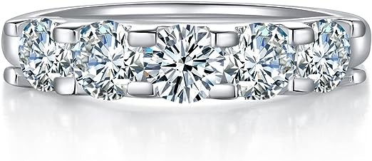 7ZHUS Wedding Band for Women, 2Carat- 5PC Moissanite Wedding Ring, D Color VVS1 Simulated Diamond 925 Sterling Silver Eternity Ring…