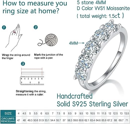 • Moissanite Anniversary Rings: moissanite anniversary ring designed with six 4mm round D Color VVS1 Clarity Lab Created Diamond Moissanite ( total weight: 2.44ct ) , 18K White Gold Vermeil Solid S925 Sterling Silver wedding ring .The elegantly simple design can be stacked or worn alone for versatile and stylish look