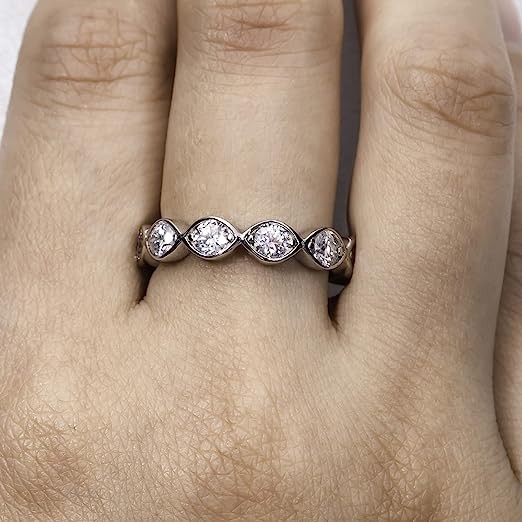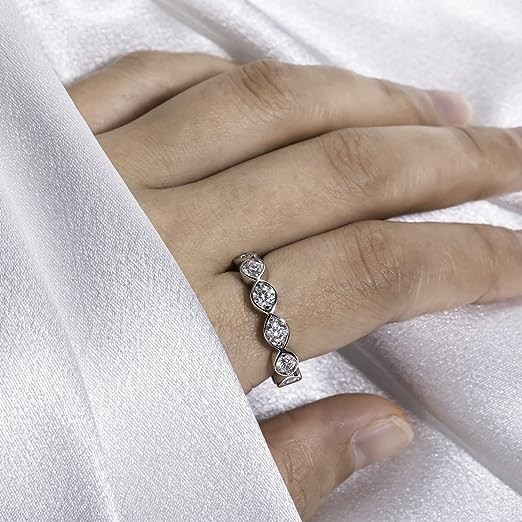 【CLASSIC DESIGN】: Classic minimalist eternity design,excellent eight hearts and arrows, round brilliant cut is the best shape to reflect lights in and out. Timeless classical in beauty boost any casual or elegant formal attire, making you focus of the feast, banquet, meeting, dating, prom, party, travel, just feel confident to wear it, be ready for receive many compliments from your friends.