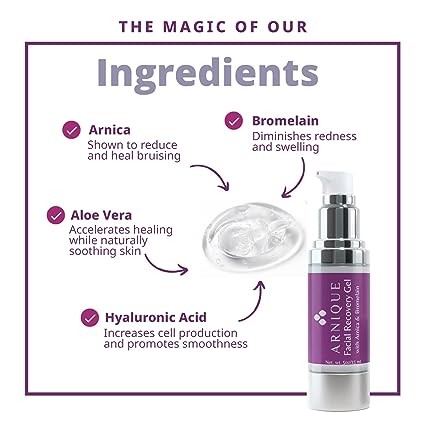 Arnique Arnica Gel for Face - Facial Recovery Gel Aftercare for Fillers & Cosmetic Injection Treatments, Arnica Montana, Bromelain, Hyaluronic Acid & Aloe Vera for Healing Bruising and Swelling After