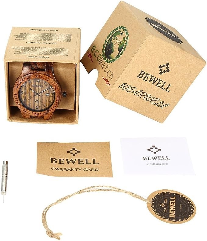 Bewell W086B Mens Wooden Watch Analog Quartz Lightweight Handmade Wood Wrist Watch