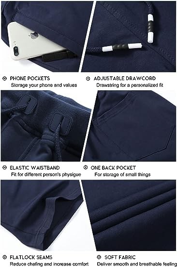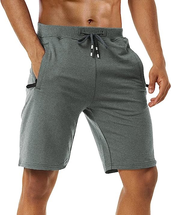 Men's Shorts Casual Cotton Gym Shorts Workout Running Shorts with Elastic Waist and Zipper Pockets