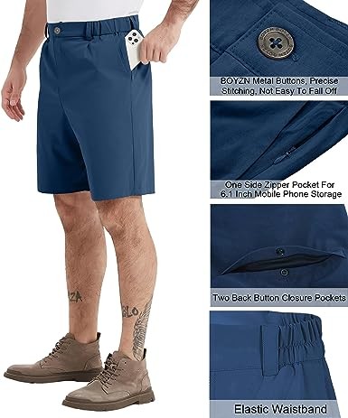 Are you looking for a stylish yet functional pair of shorts for your next golf outing? Look no further than Boyzn Men's Golf Shorts! Crafted from high-quality polyester materials, these athletic shorts are designed to keep you comfortable and focused on the game. Featuring a classic fit and flat-front design, they are the perfect blend of style and functionality. But that's not all - these Boyzn shorts are also quick-drying, stretchable, breathable, and moisture-wicking to keep you cool and dry throughout your round. Plus, these golf shorts with five pockets, including a zipper pocket, you'll have plenty of room for all your golf essentials. These sport shorts are also great for all kinds of outdoor activities, from hiking to fishing to travel. Whether you're looking for a pair of performance shorts for your next adventure or just a comfortable and stylish pair of outdoor casual work shorts, Boyzn has you covered. So why wait? Treat yourself to a pair of Boyzn Men's Golf Shorts today and experience the ultimate in comfort and style!
