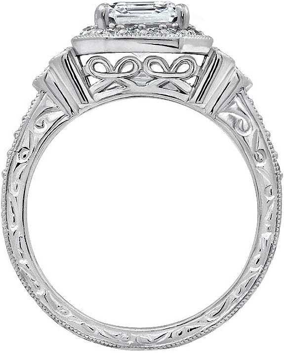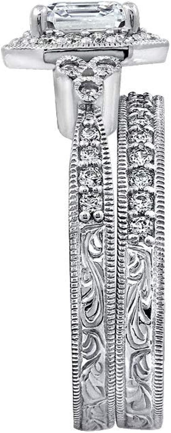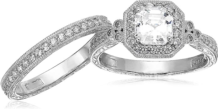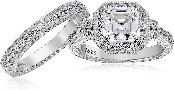 Collection Platinum or Gold Plated Sterling Silver Antique Ring set with Asscher-Cut Infinite Elements Cubic Zirconia