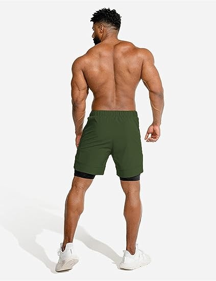 2-in-1 Shorts Design: These men's 2 in 1 gym workout shorts have built in elastic tight fit shorts offers support to thigh muscle, prevent friction, muscle fit. Adjustable drawstring elastic waistband fit your waist perfectly. Unique cut of hem provides extra flexibility. Two large side pockets, built-in phone pocket, can store your phone, earphones, mp3, keys, cards and other personal items.
