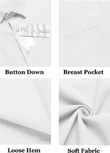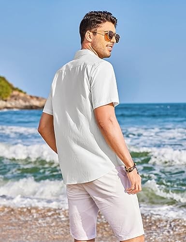 COOFANDY Mens Casual Linen Shirt Short Sleeve Button Down Shirt Summer Beach Hawaiian Shirts