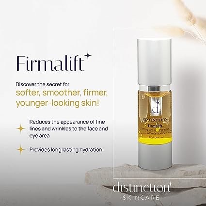 DISTINCTION FIRMALIFT: Discover the secret for smoother, glowing, younger-looking skin! This amazing serum contains the power of Elastisome, clinically shown to reduce the appearance of fine lines and wrinkles. Works great on those tell-tale areas around the eyes, temples and neck!