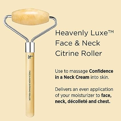 • SMOOTH & TIGHTEN SET - Turn your skincare routine into a calming, soothing experience. This combo from IT Cosmetics includes a 2.6 oz jar of Confidence in a Neck Cream and the Heavenly Luxe Face & Neck Citrine Roller.