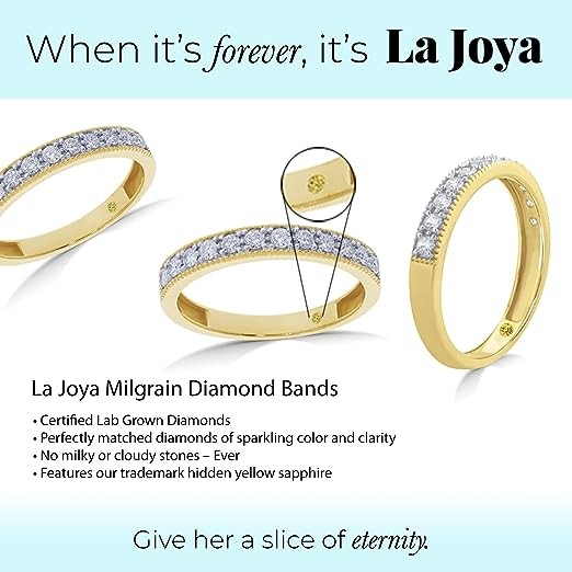 La Joya 1/10 - 1/2 CT TW Certified Lab Created Vintage Inspired Diamond Rings - Sparkling 10k Solid Gold Wedding Bands for Women, Stackable Band, Promise Ring and Anniversary Bands for Women