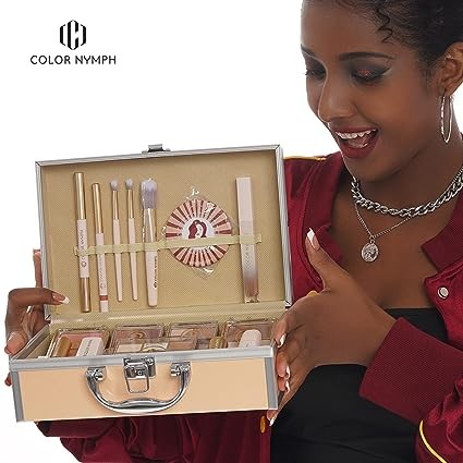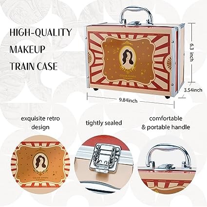 Makeup Kit for Teen Girls,Color Nymph Girls Makeup Kits For Teens With The Retro Style Train Case Included Eyeshadow Palette Blushes Bronzer Highlighter Lipstick Brushes Mirror