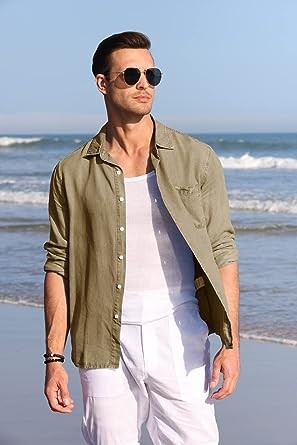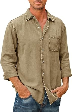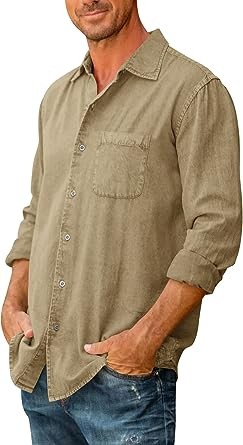 Runcati Mens Denim Long Sleeve Button Down Shirt Casual Durable Loose Fit Jean Shirts with Chest Pocket