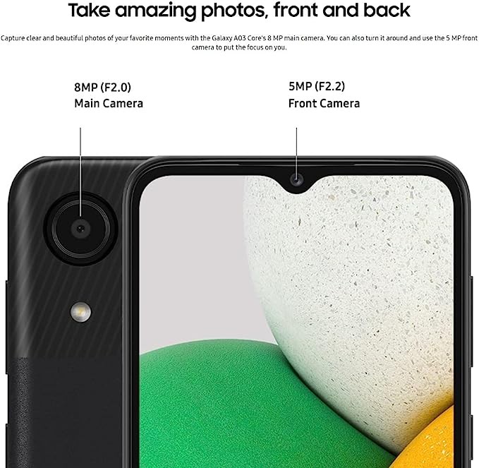 SAMSUNG Galaxy A03 Core (SM-A032/DS) Dual SIM 32GB/ 2GB RAM, GSM Unlocked International Version - No Warranty - Black