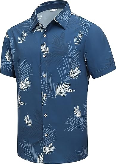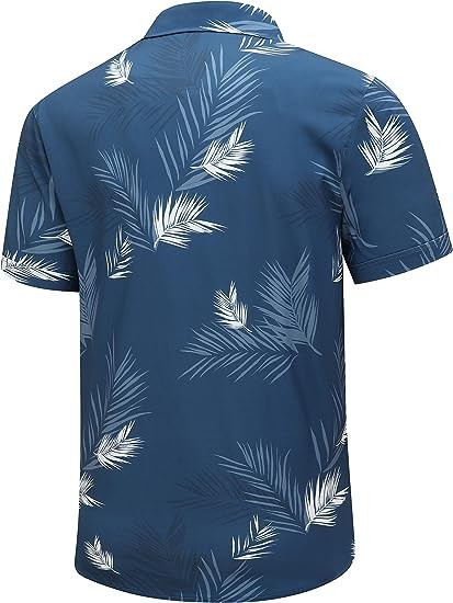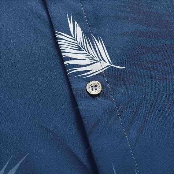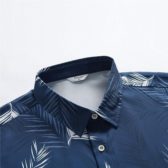SheLucki Hawaiian Shirt for Men, Unisex Summer Beach Casual Short Sleeve Button Down Shirts, Printed Palmshadow Clothing