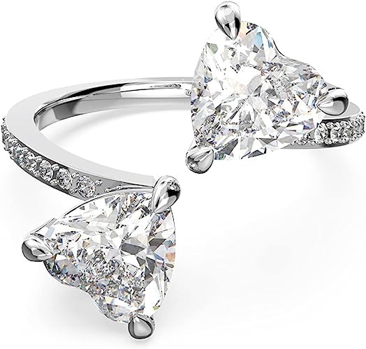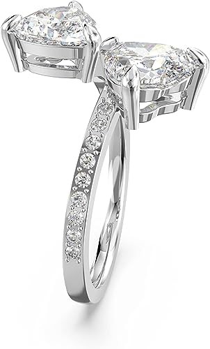 • Items delivered: (1) Swarovski Attract Soul ring for women, white heart-cut crystals on a curved rhodium finish band, size 50, complete with Swarovski ring box