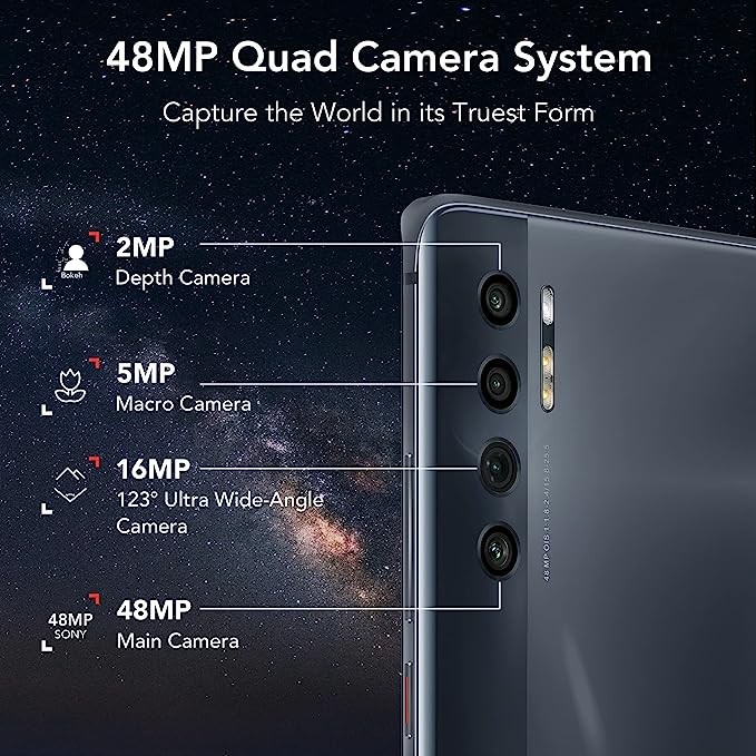 48MP OIS Quad Camera: Capture sharp photos and videos with the 48MP Optical Image Stabilization (OIS) main camera. The 16MP ultra wide-angle, 5MP macro, and 2MP depth camera allow you to capture and explore more of the world around you. The 32MP front camera with dedicated RGB sensor accurately captures skin tone and natural lighting for stunning selfies.